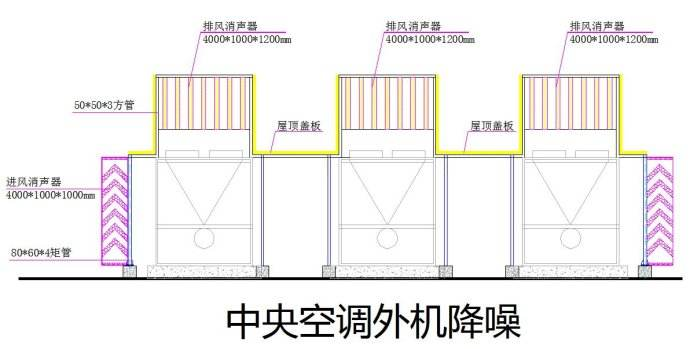 1、空調風機出口處安裝復合式消聲設備,消耗風機空氣動力性噪聲能量;安裝環境允許情況下也可在空調機外側安裝隔聲屏障,為周圍住宅營造聲影保護區域。